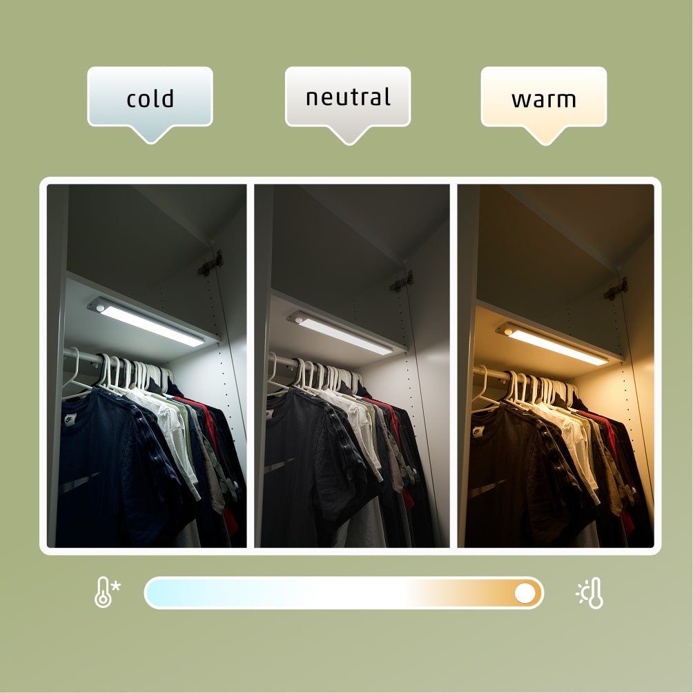 With just two clicks, you can easily change the color temperature and choose between warm, daylight, or cool light to set the right mood.